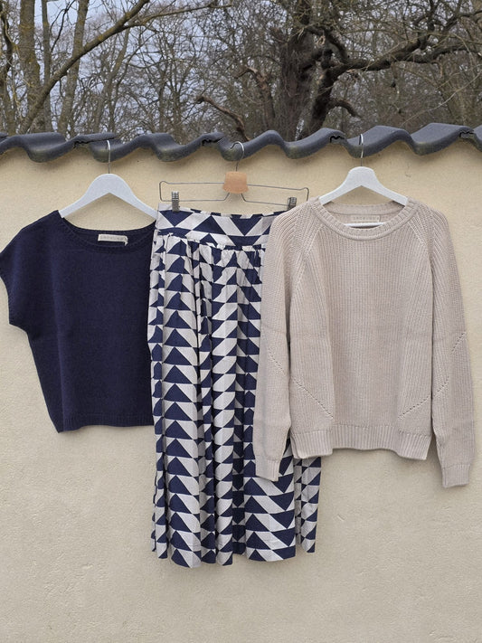 Grobunds tøj kan mixes med mange andre mærker, farver og mønstre. Det er en slags tidløs basisgarderobe der sagtens kan stå alene, men som også sagtens kan mixes med andre materialer, farver og mønstre.