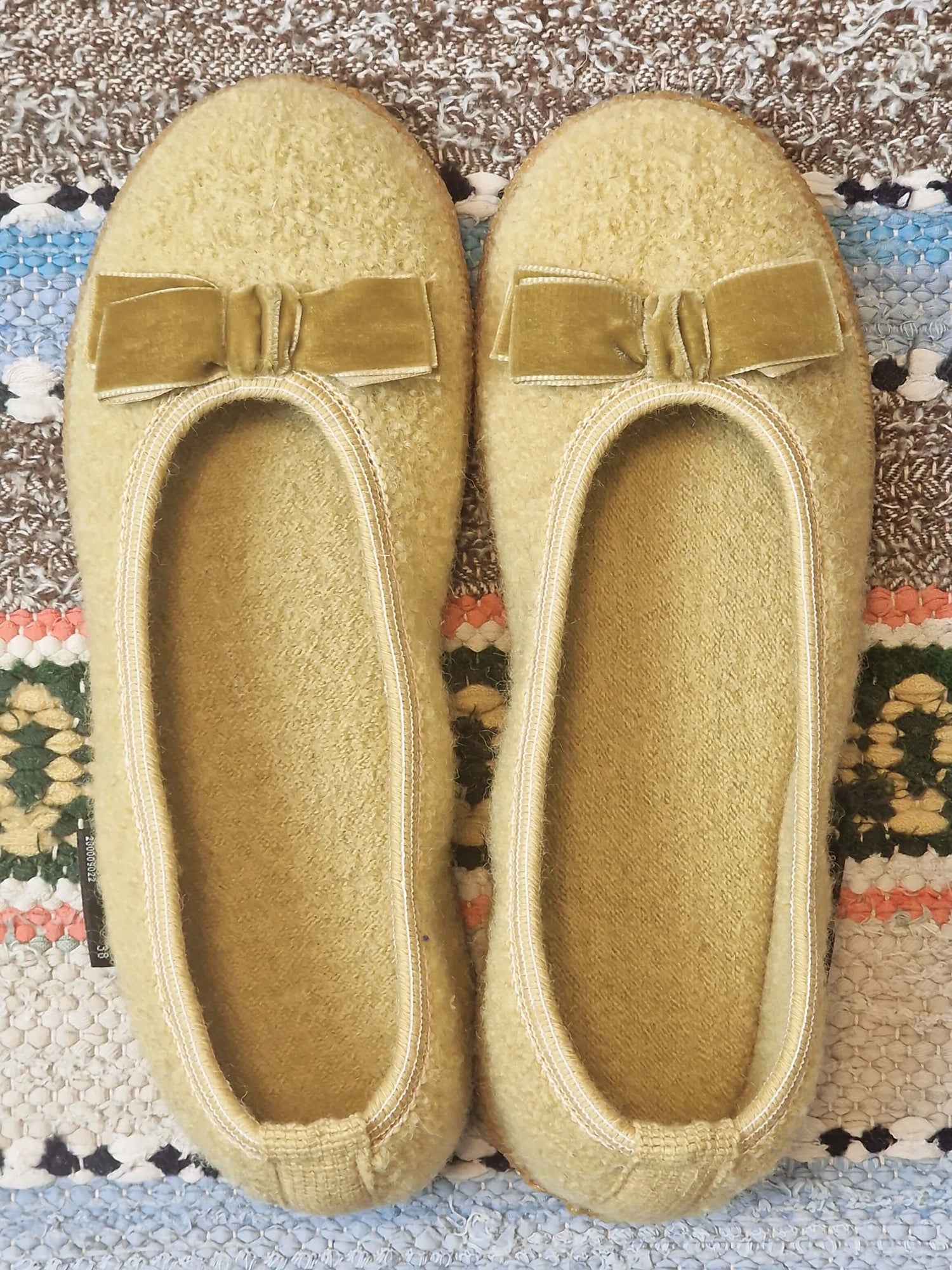 Materialerne er uld, læder, rågummi og kork. Hjemmetøfler af læder eller filt er det jeg sælger mest af.