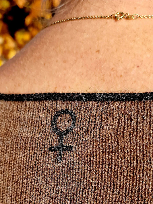 Strikbluse i Alpaca, dark camel