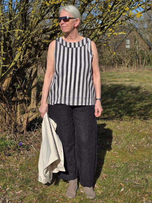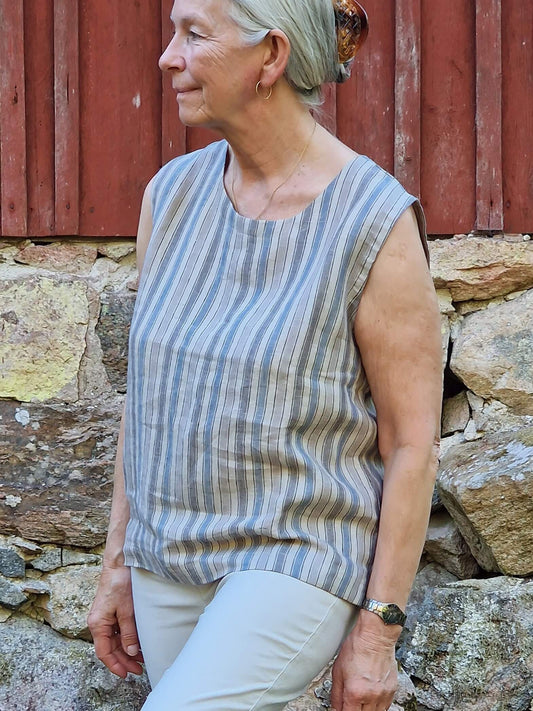 Stribet tunikabluse i hør/bomuld