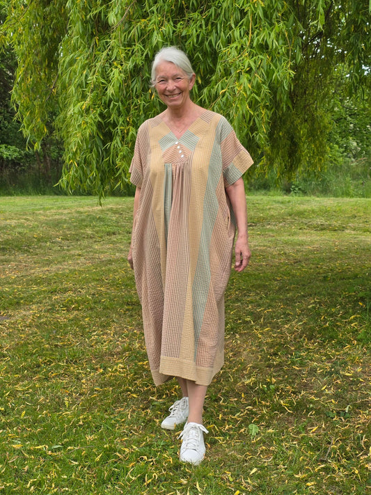 Stribet oversize maxikjole i let viskose. SPAR 50%