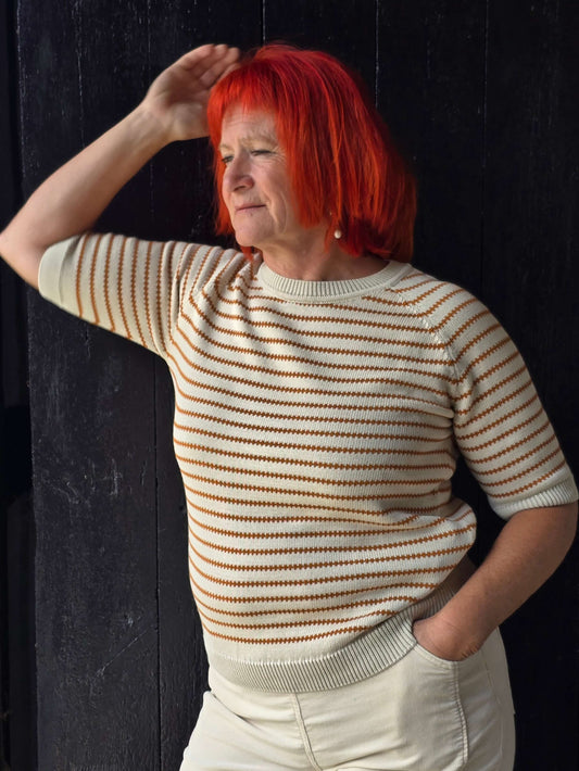 Strikket bluse med gyldne striber