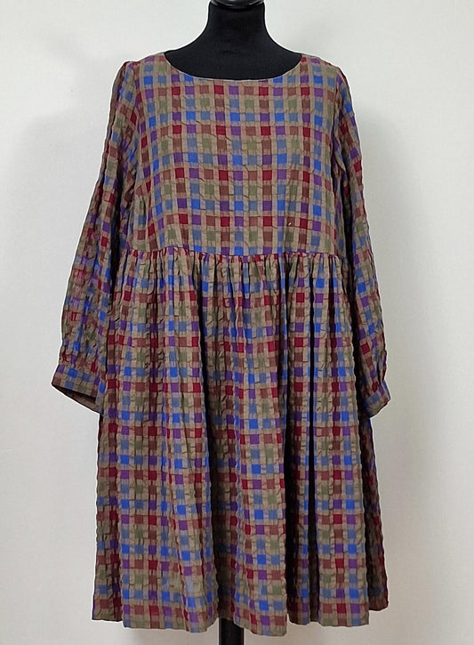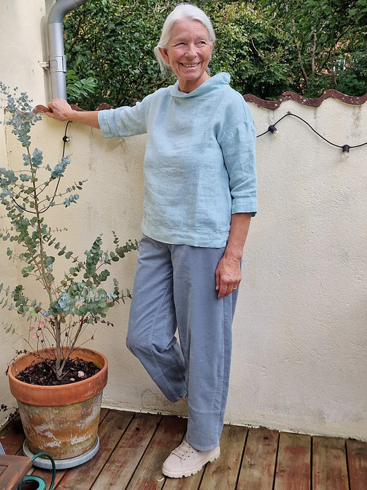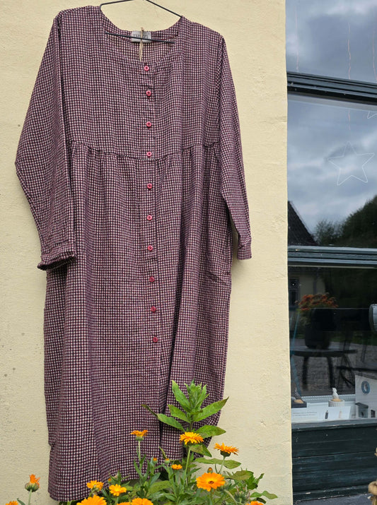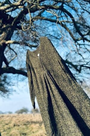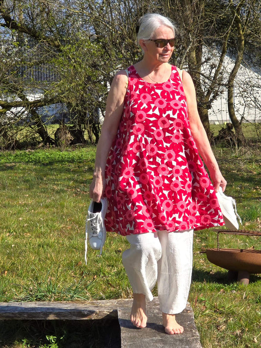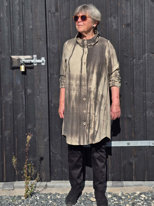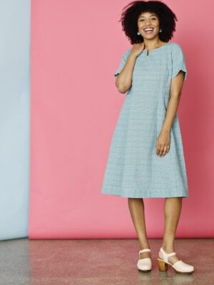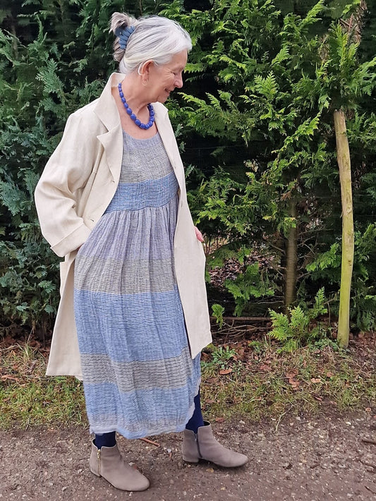 Tætsiddende turkis eller gul kjole i hør/bomuld. SPAR 50%