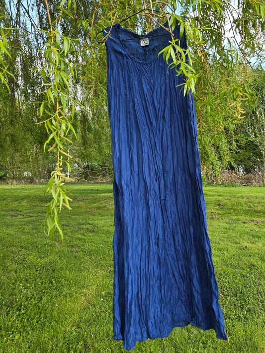 "Zeta" - lang kjole i krøllet silke, kongeblå. SPAR 30%