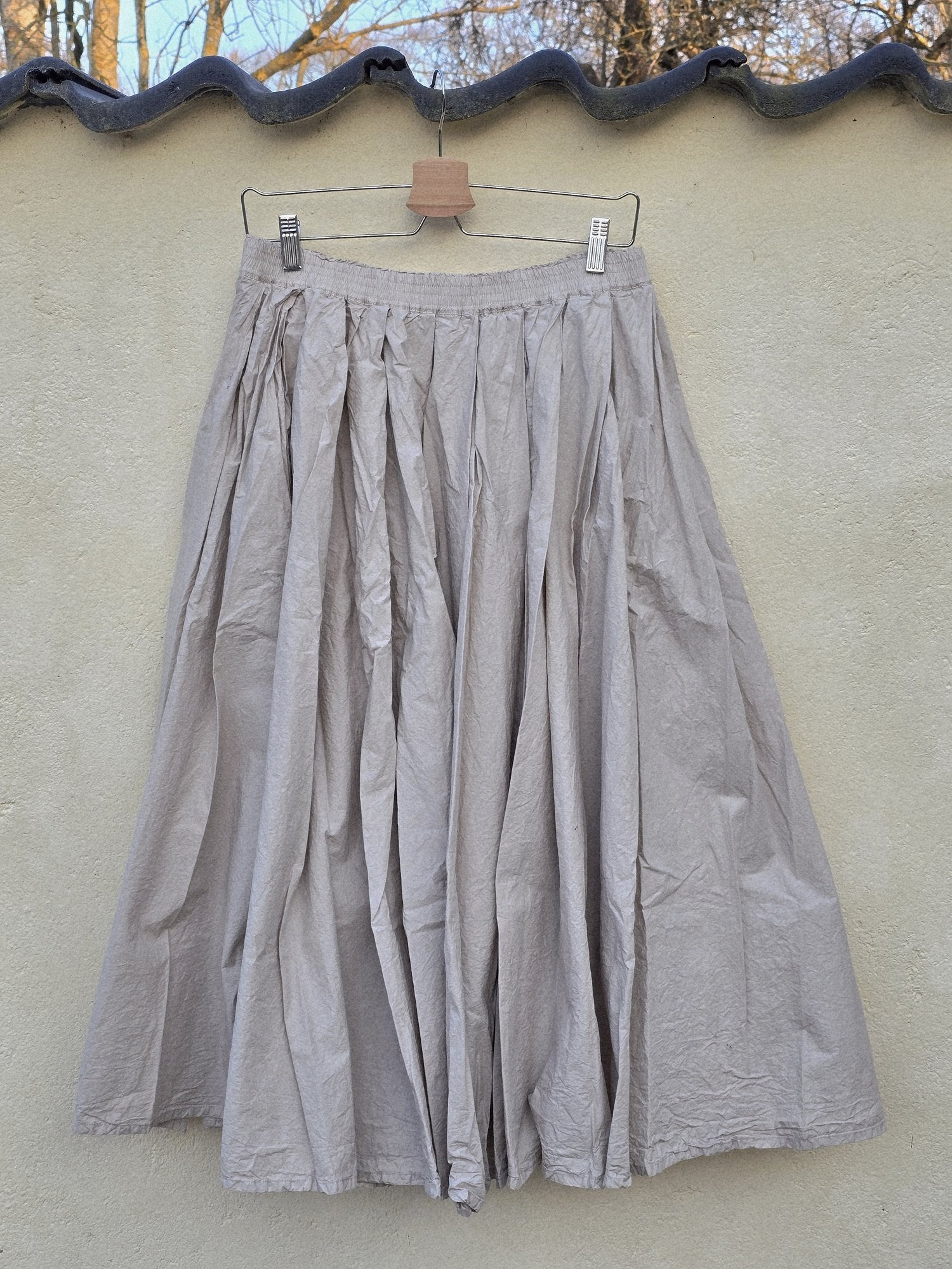 Skøn nederdel med masser af vidde og lyd. Den meget crispy bomuldsvare er kendetegnende for Privatsachens kollektioner. Man skal både ses og høres:)