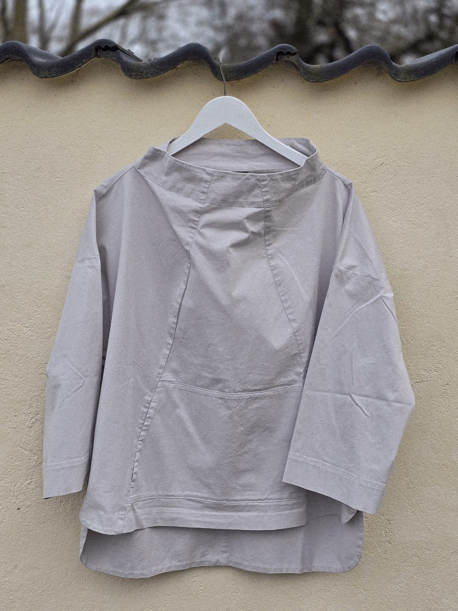 Tankerne går tilbage til de glade 60'ere med denne fine anorakbluse. Den elegante hals står flot og sammen med bukserne i samme stof, udgør det er meget fint forårssæt. Jeg bryder mig ikke om ordet "smart", men dét er det :)