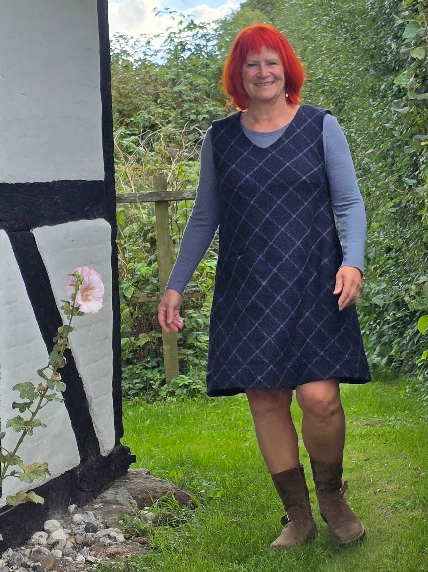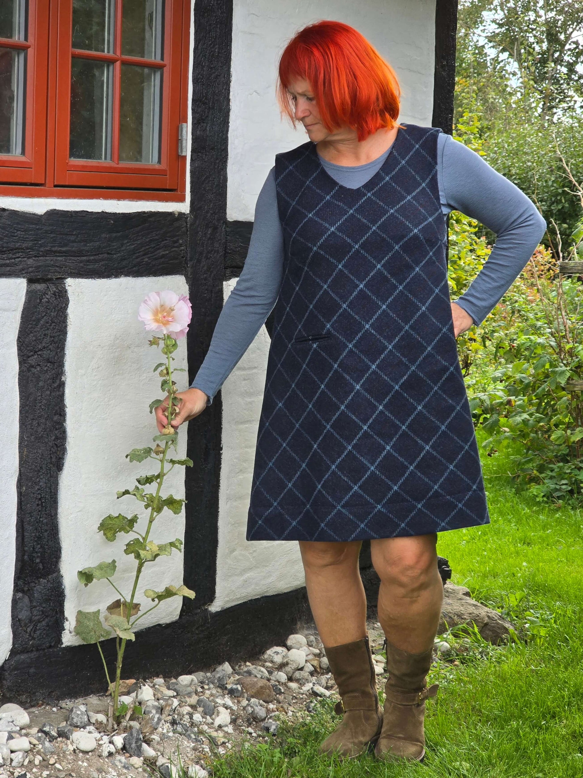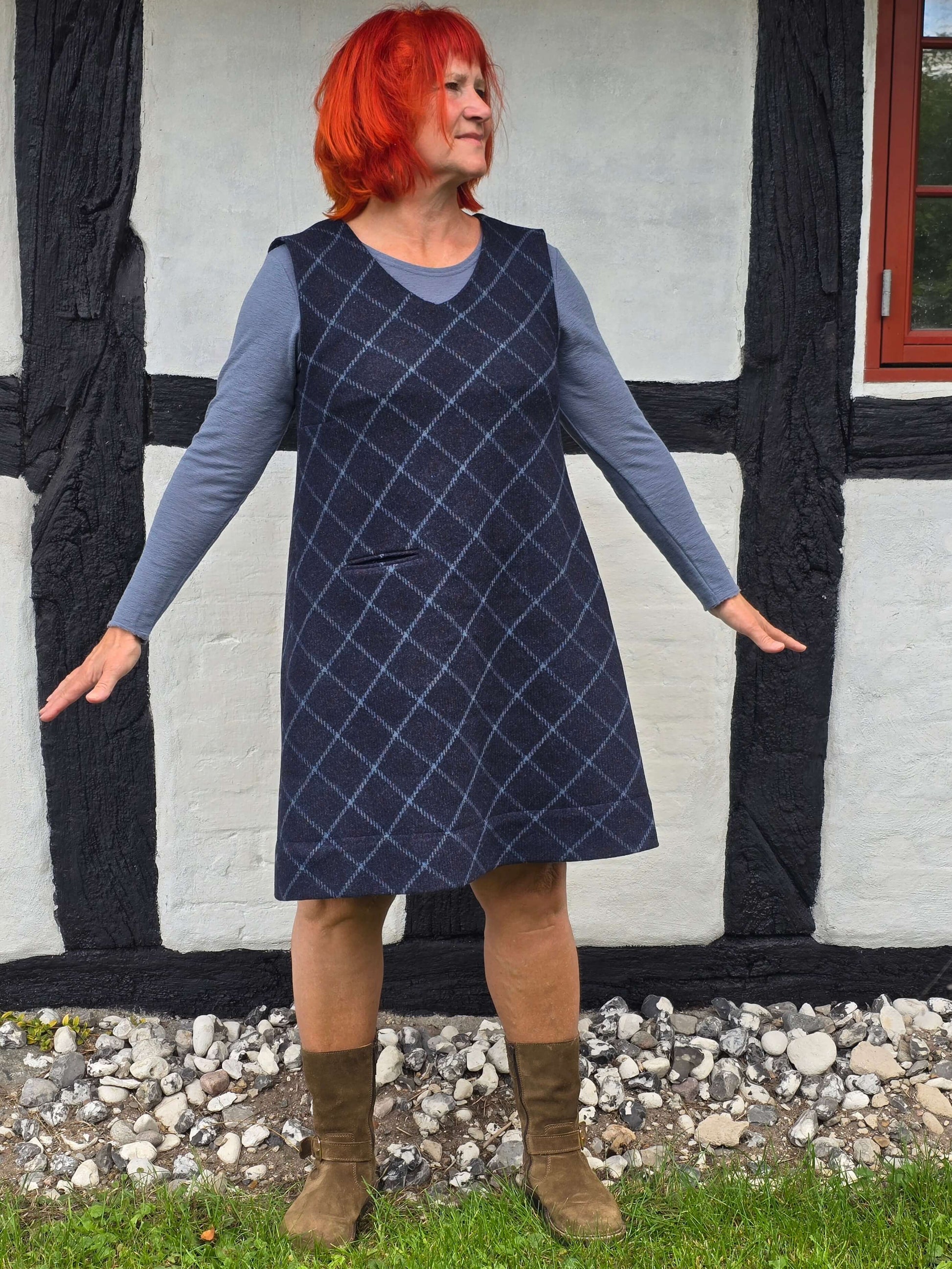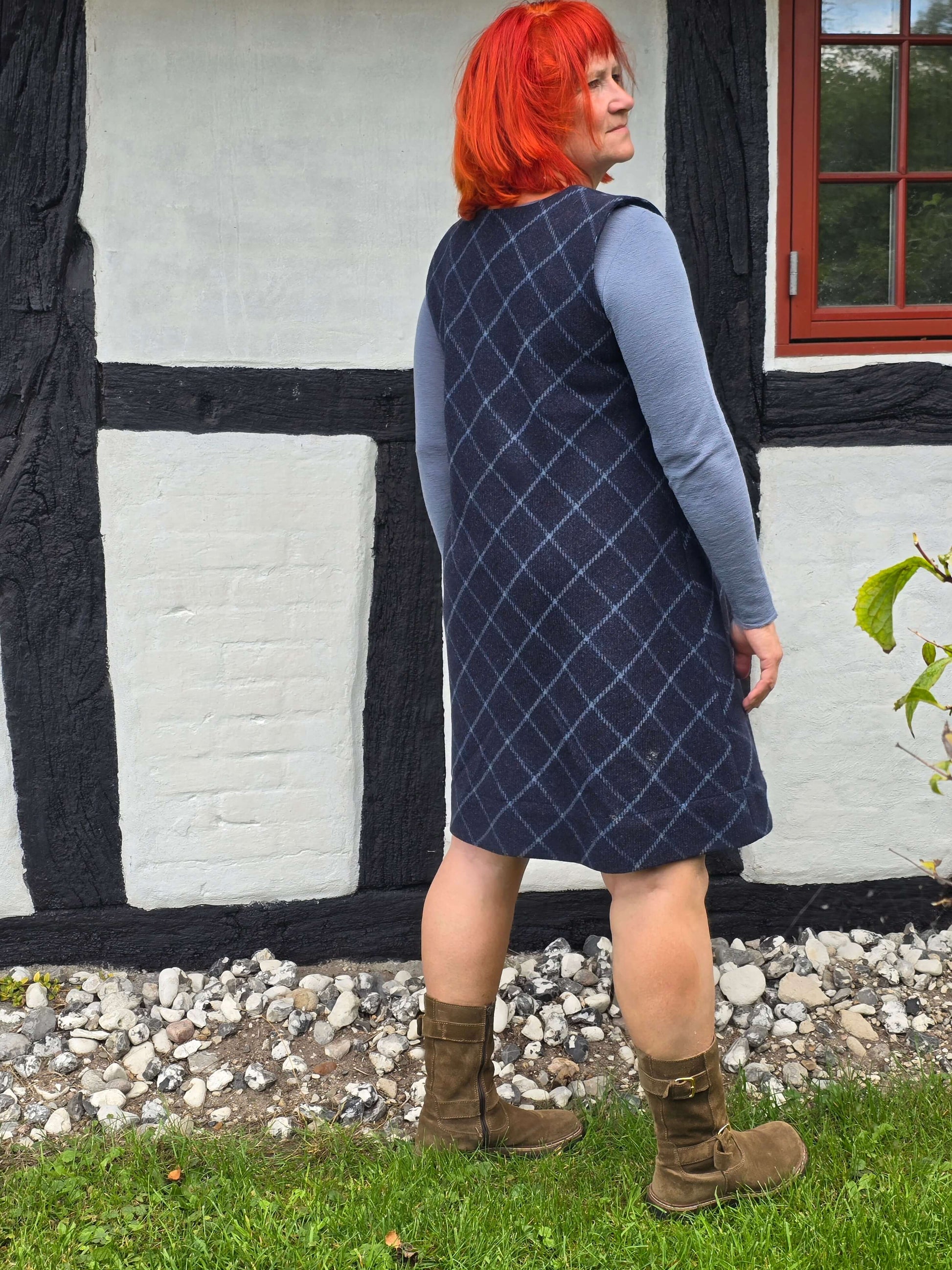 Skab det sødeste vinterlook med denne ternede blå spencer i shetlands uld! Kjolen har en yndig A-silhuet og er varm og hyggelig.
