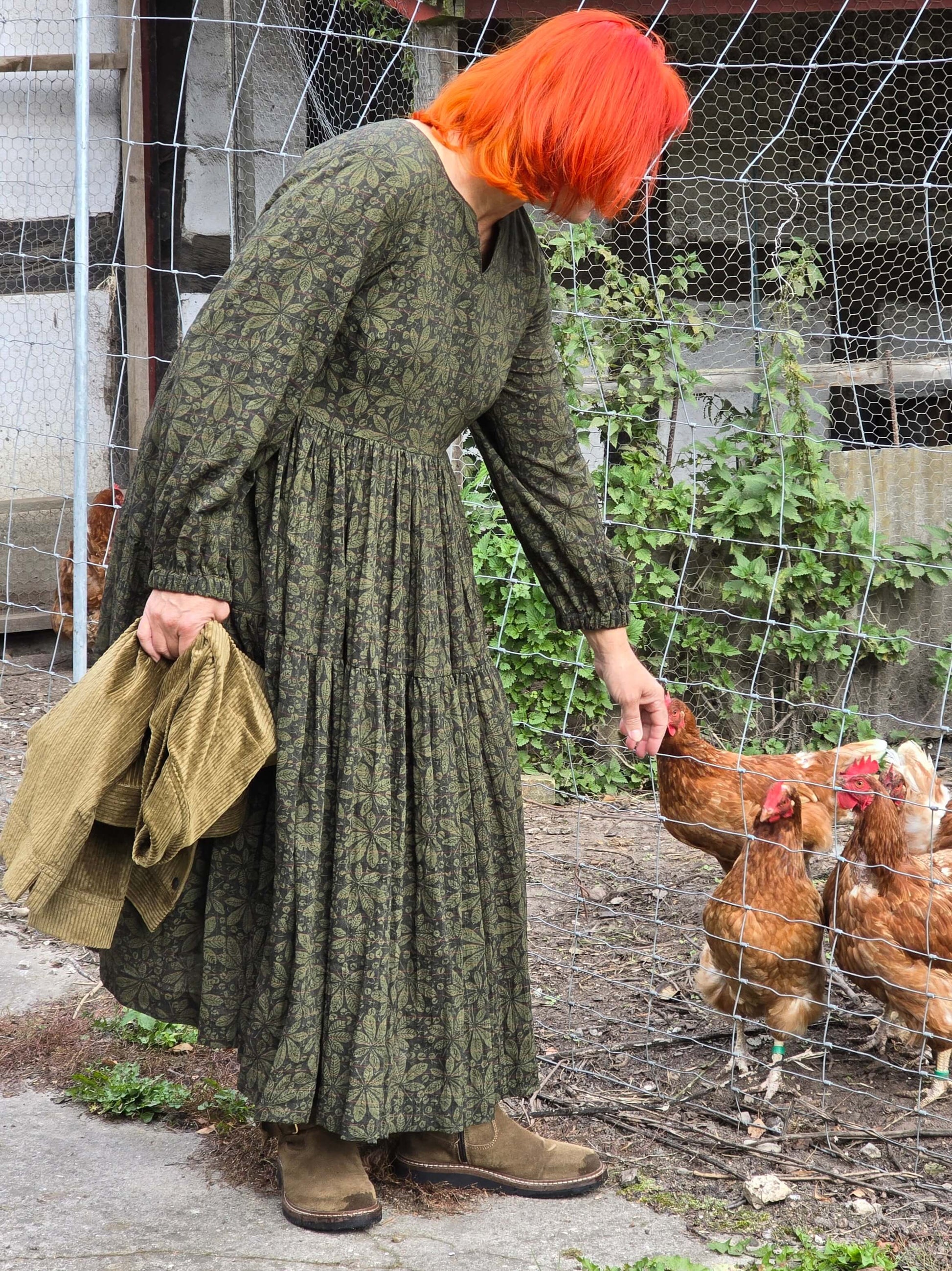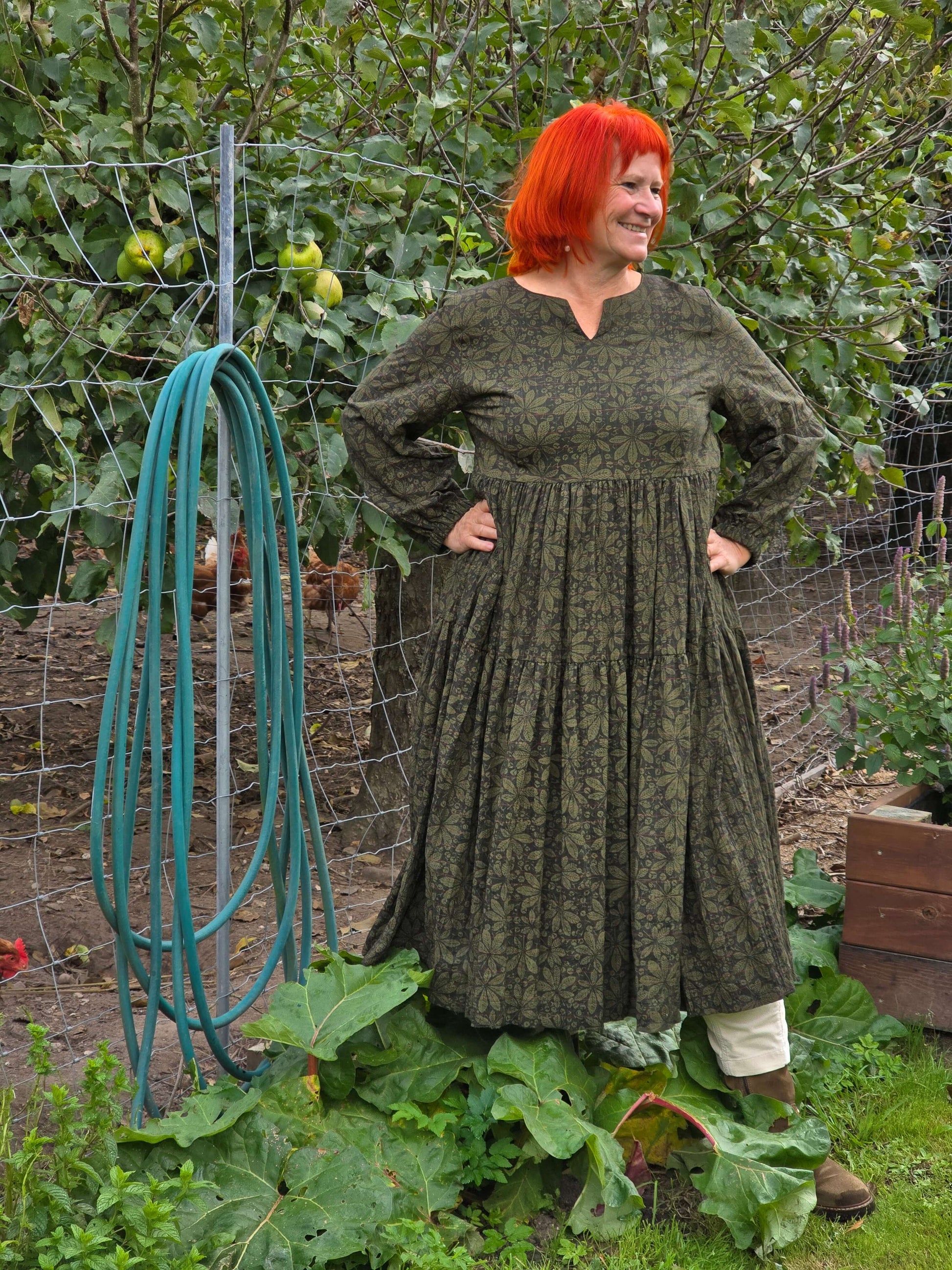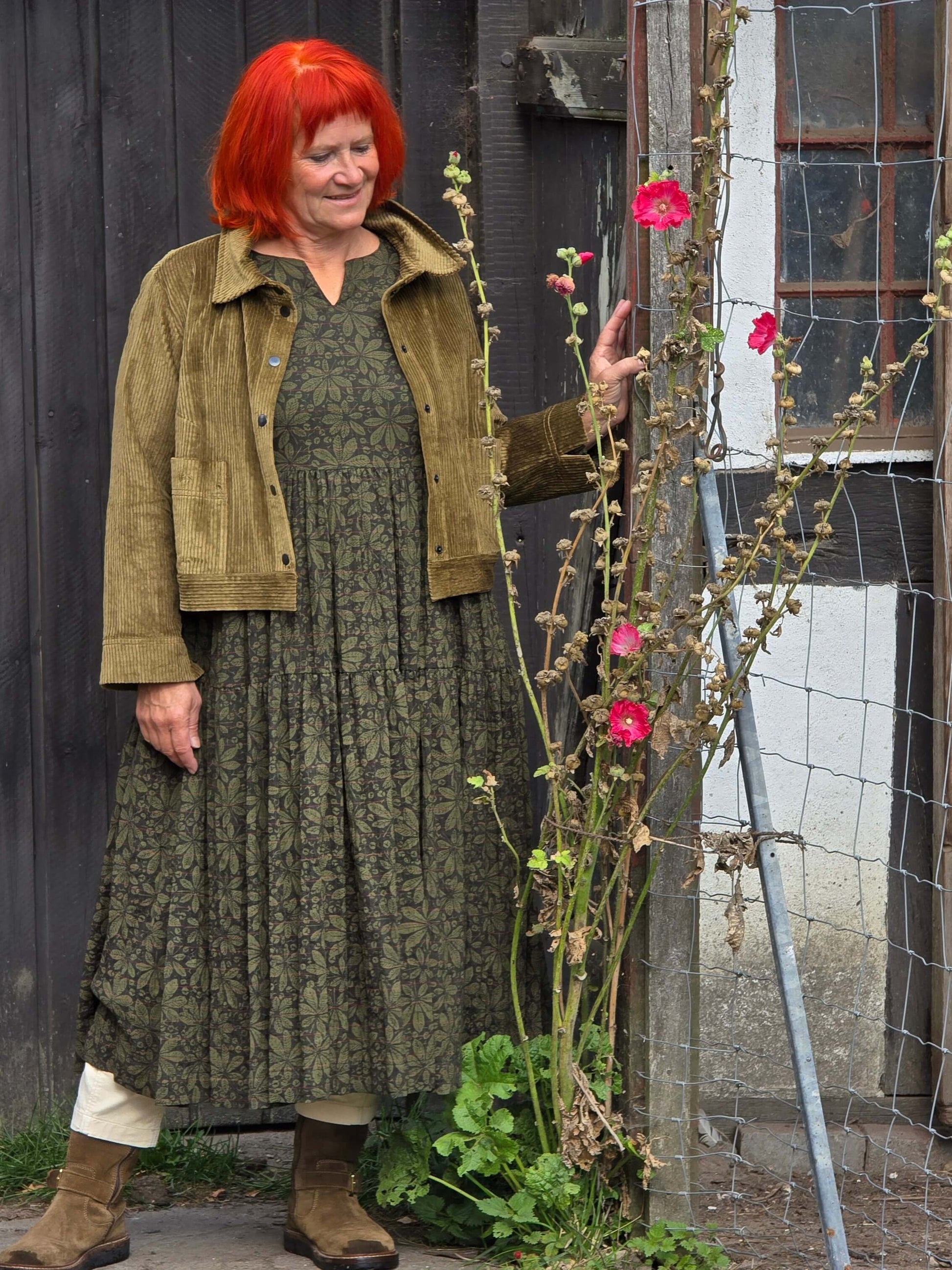 Ultra feminin og elegant kjole i et vidunderligt stykke stof med et flot efterårsprint. Kjolen er vores velsiddende Kirsten silhuet. Man føler sig meget fin i kjolen, der både kan bruges til fine anledninger, men også til hverdag, hvis man godt kan lide pæn kjole. Kjolen har et skørt i to etager, der bevæger sig flot og elegant omkring kroppen. Stoffet er nemlig let og fint, men med et meget smukt fald og indvendigt hjælpes det også på vej af et silkeblødt og lækkert viskosefoer. Kjolen har lynlås i siden og selvfølgelig også lommer.