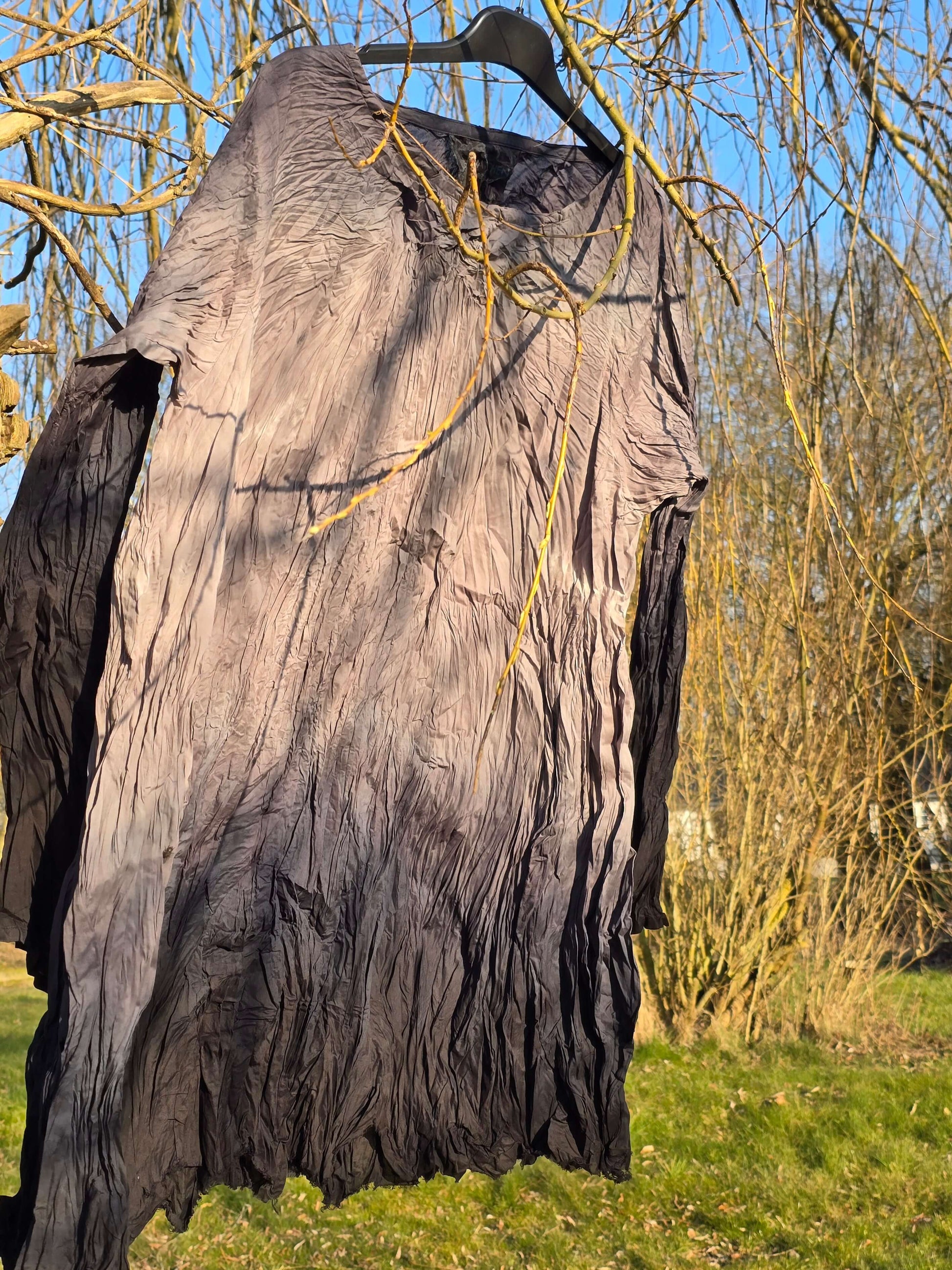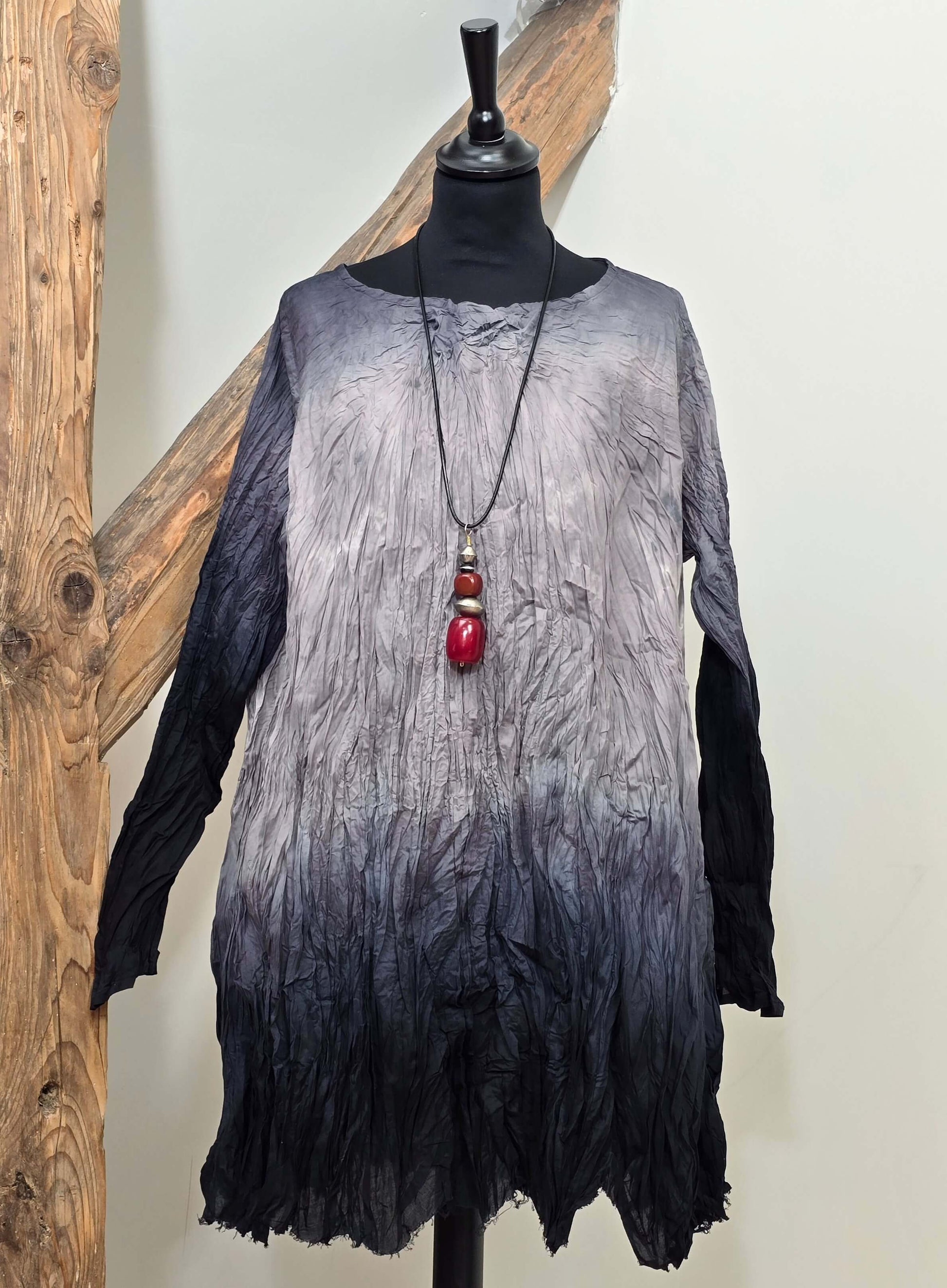 Nu laves den populære krøleffekt også i en tunika med masser af stof. Flot over et par brede bukser eller en lang nederdel.
