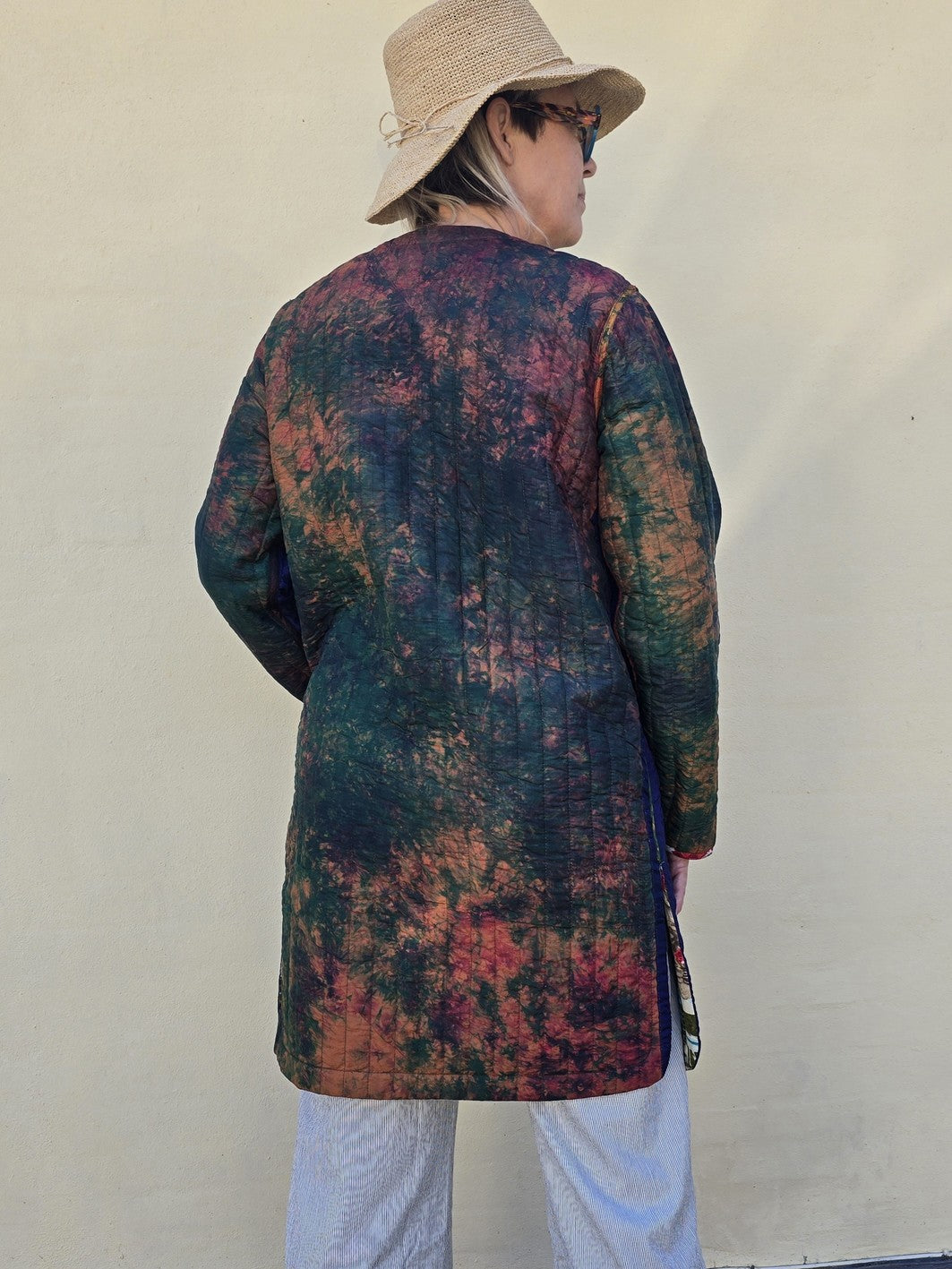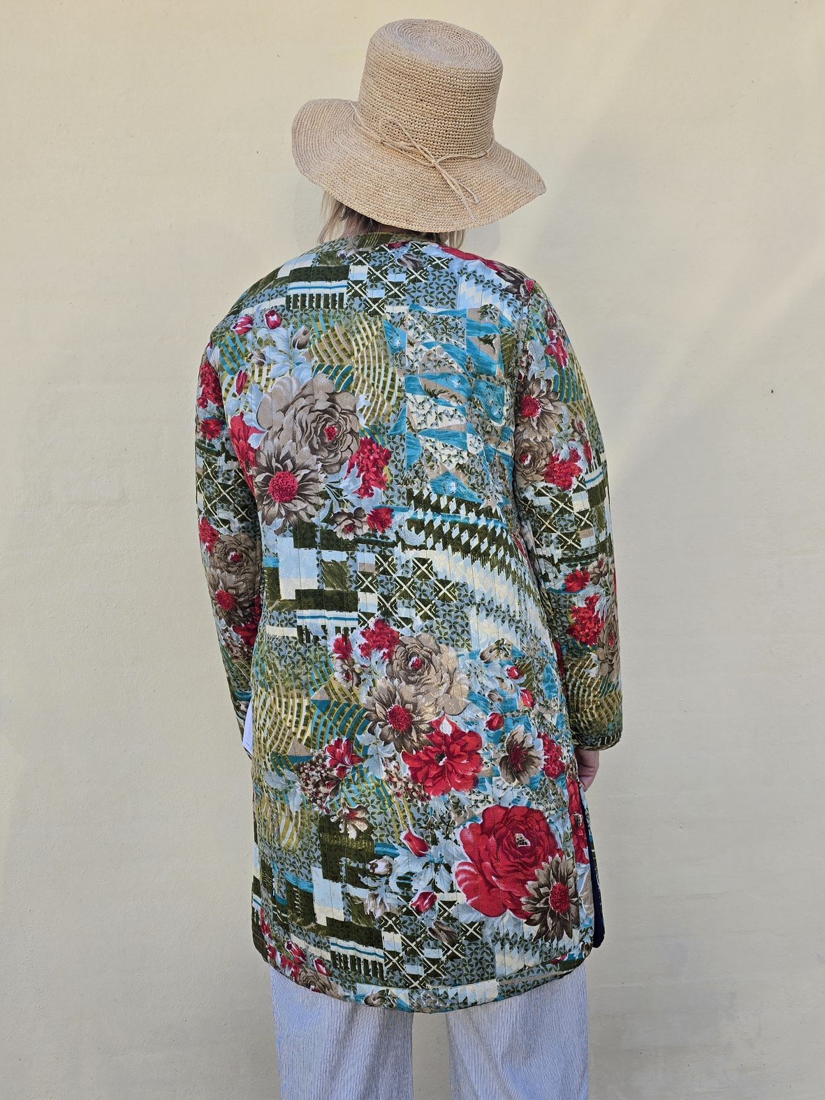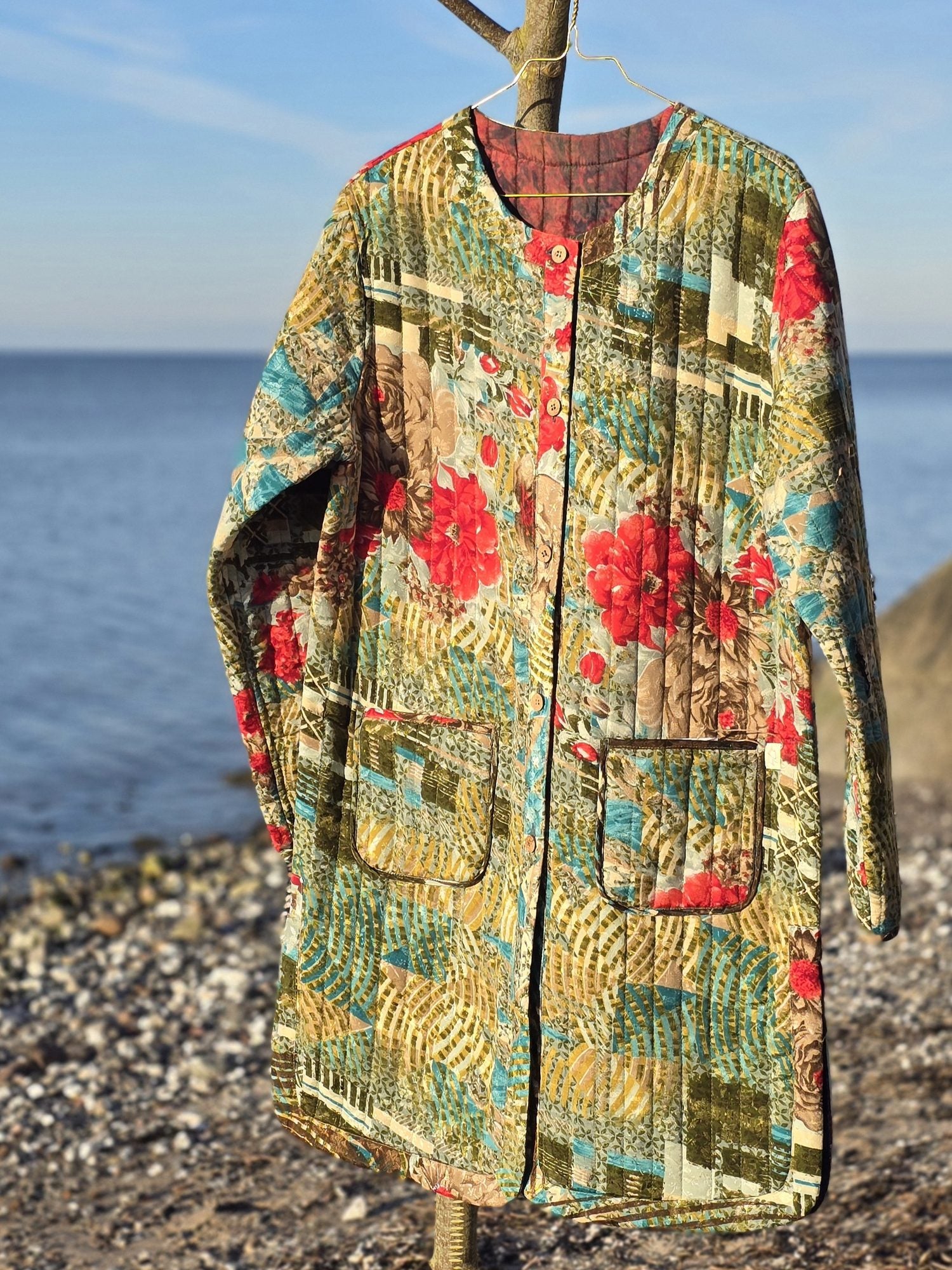 Mellemlang quiltet jakke med dobbeltslids lavet af genbrugte indiske