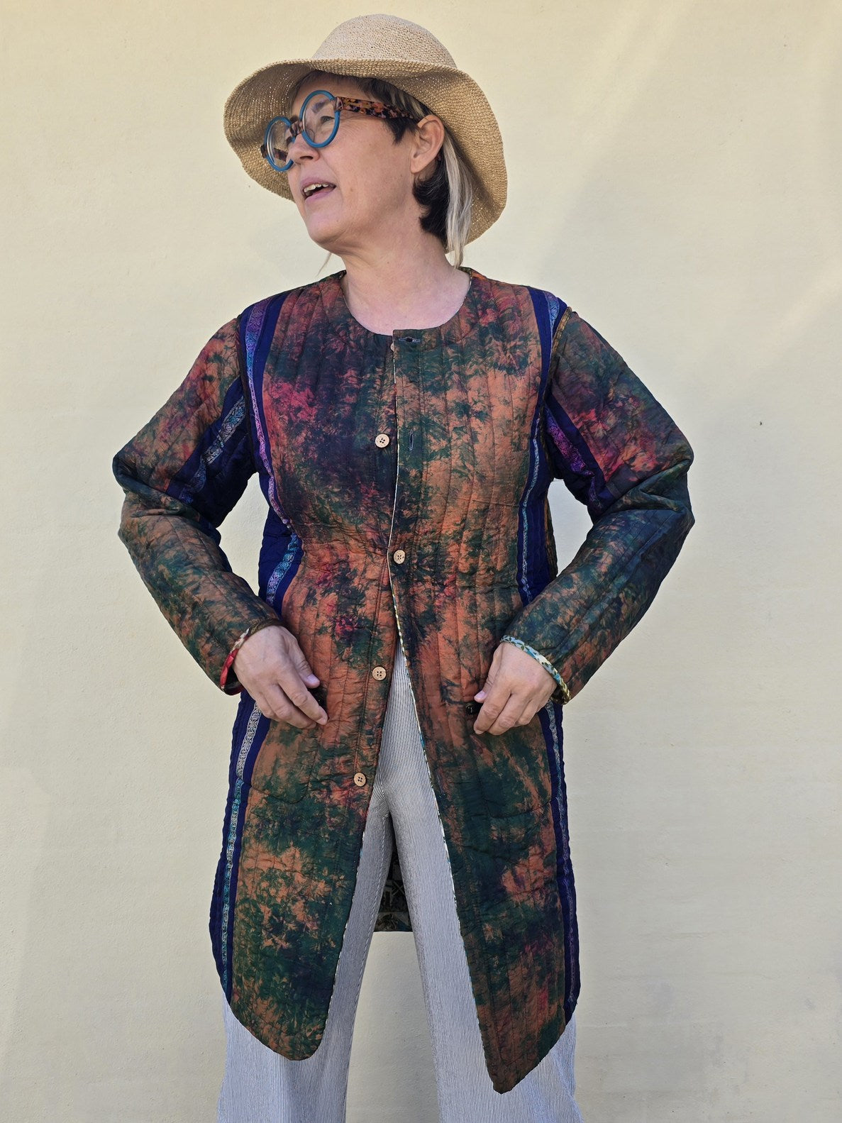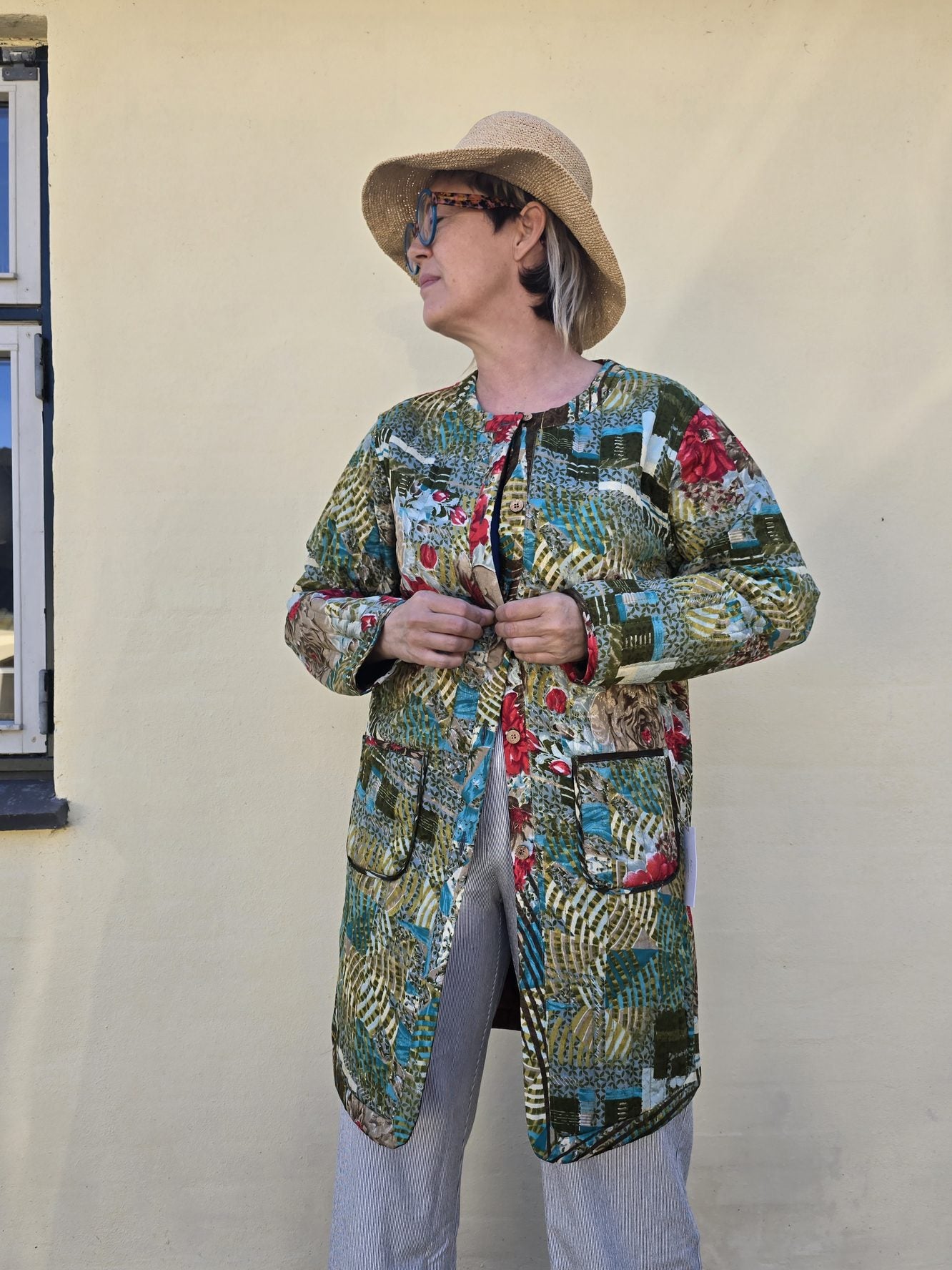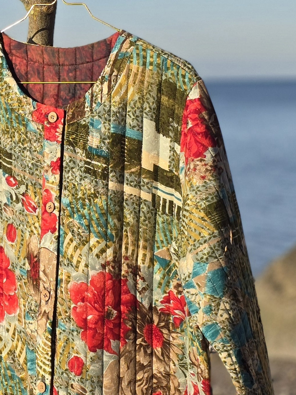 Mellemlang quiltet jakke med dobbeltslids lavet af genbrugte indiske
