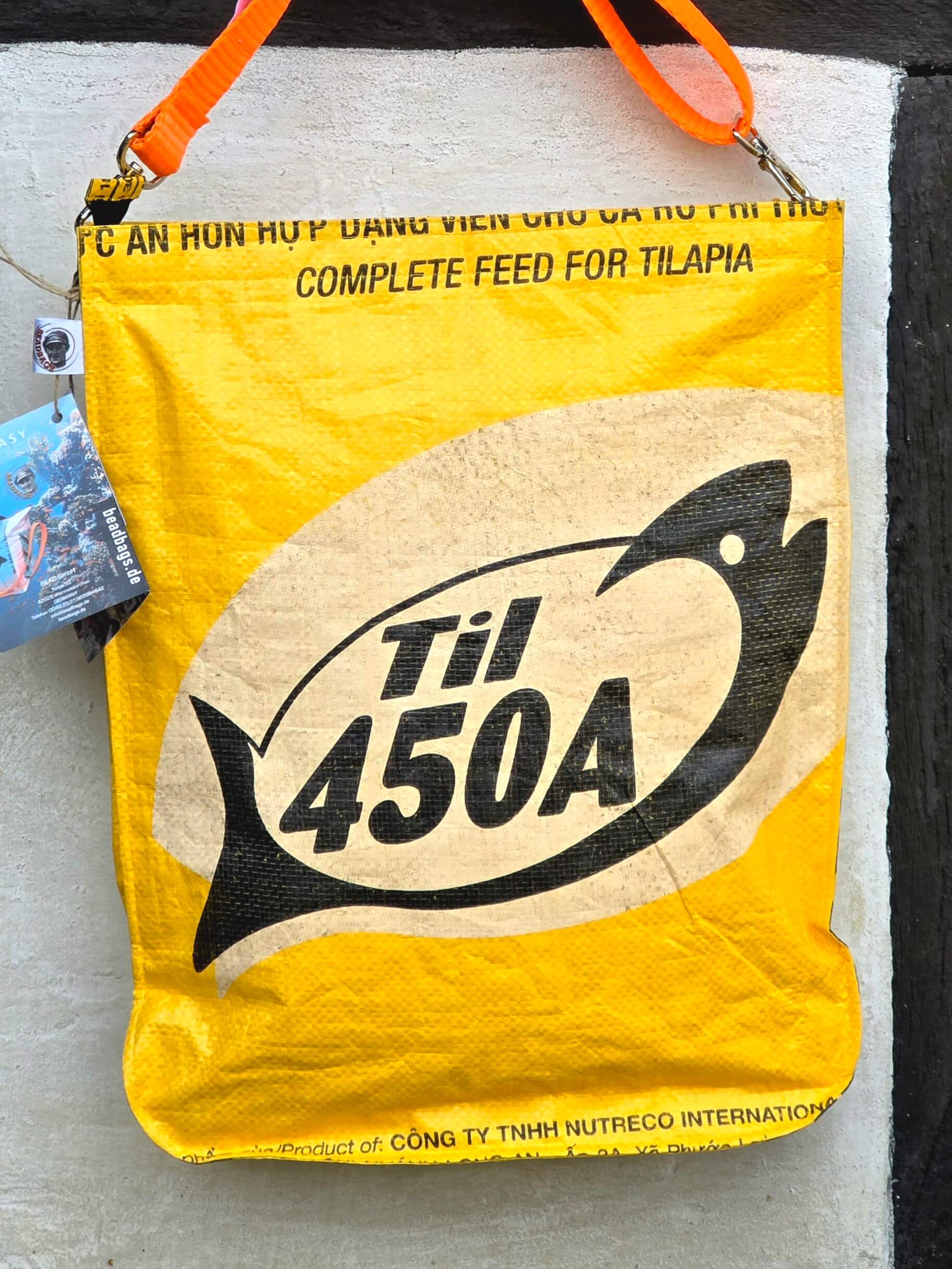 Gør en forskel med stil! Denne håndlavede universaltaske er ikke bare praktisk – den er også et stærkt statement for bæredygtighed, retfærdighed og personlig stil. Tasken er fremstillet af vandafvisende materiale fra genbrugte rissække og sække fra fiskefoder og produceret under fair forhold i Cambodja. Hver taske er unik og bringer farve og karakter til din hverdag.
