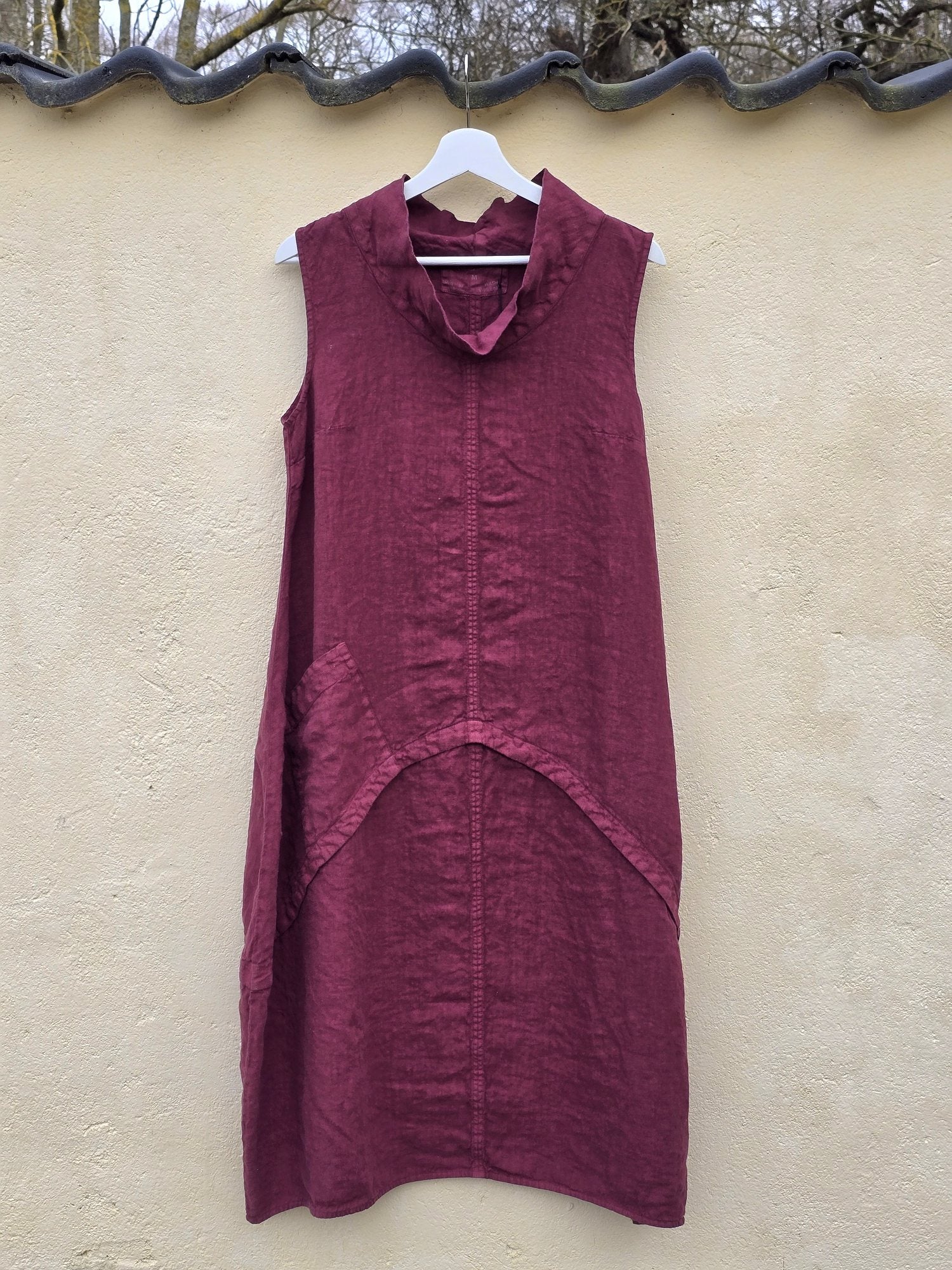 Kjolen her er i let A-facon, er ærmeløs og har en flot, bred krave som man enten kan lade stå eller folde ned. En all-round kjole der bare falder på plads når man tager den på.