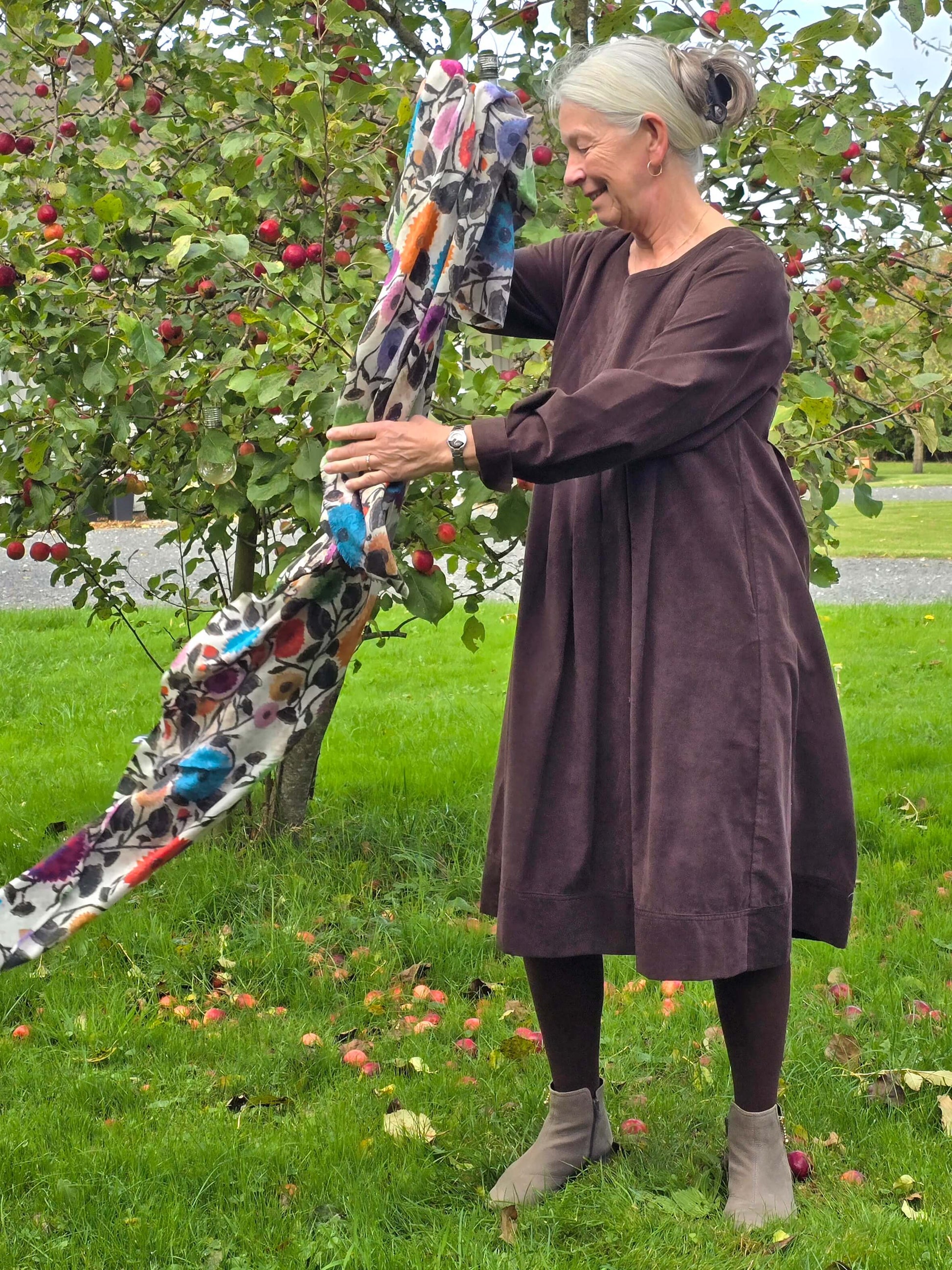 Vask derfor kjolen forsigtigt, gerne på uldprogram, så fløjlen ikke centrifugeres for hårdt. Lad kjolen tørre på en bøjle.